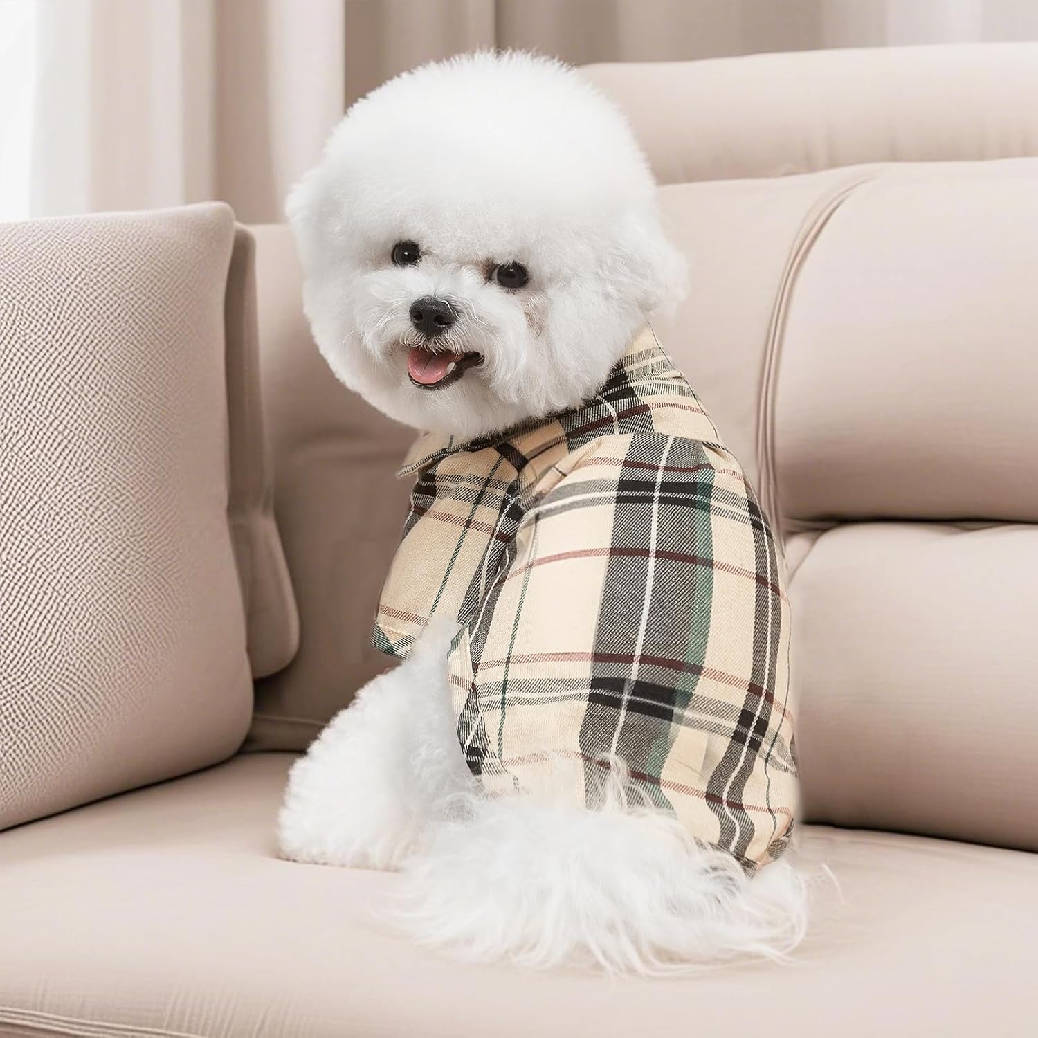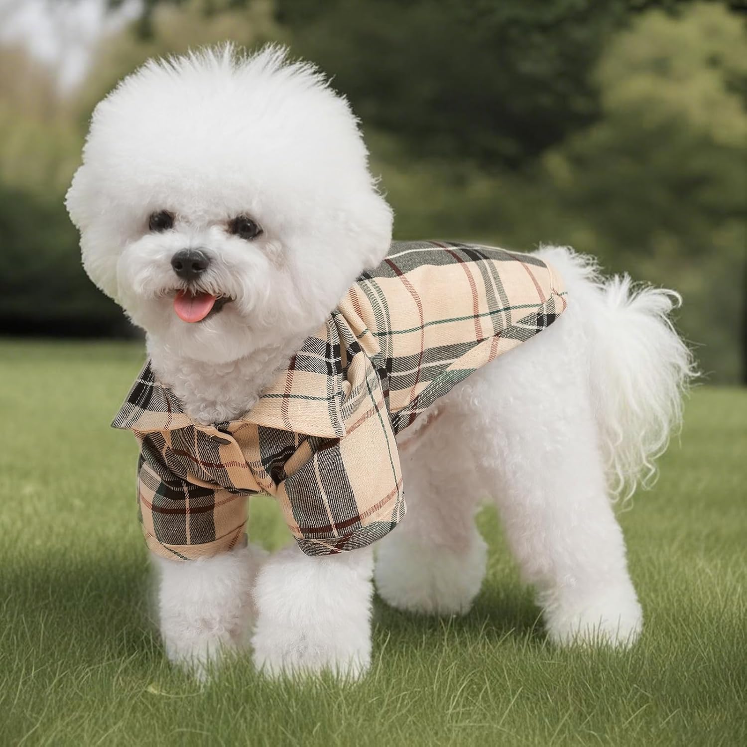 PUPTECK Plaid Dog Shirt, Cute Puppy Cat Polo T-Shirt, Soft Pet Clothes Boy Girl Outfit for Small Medium Dogs, Costume S